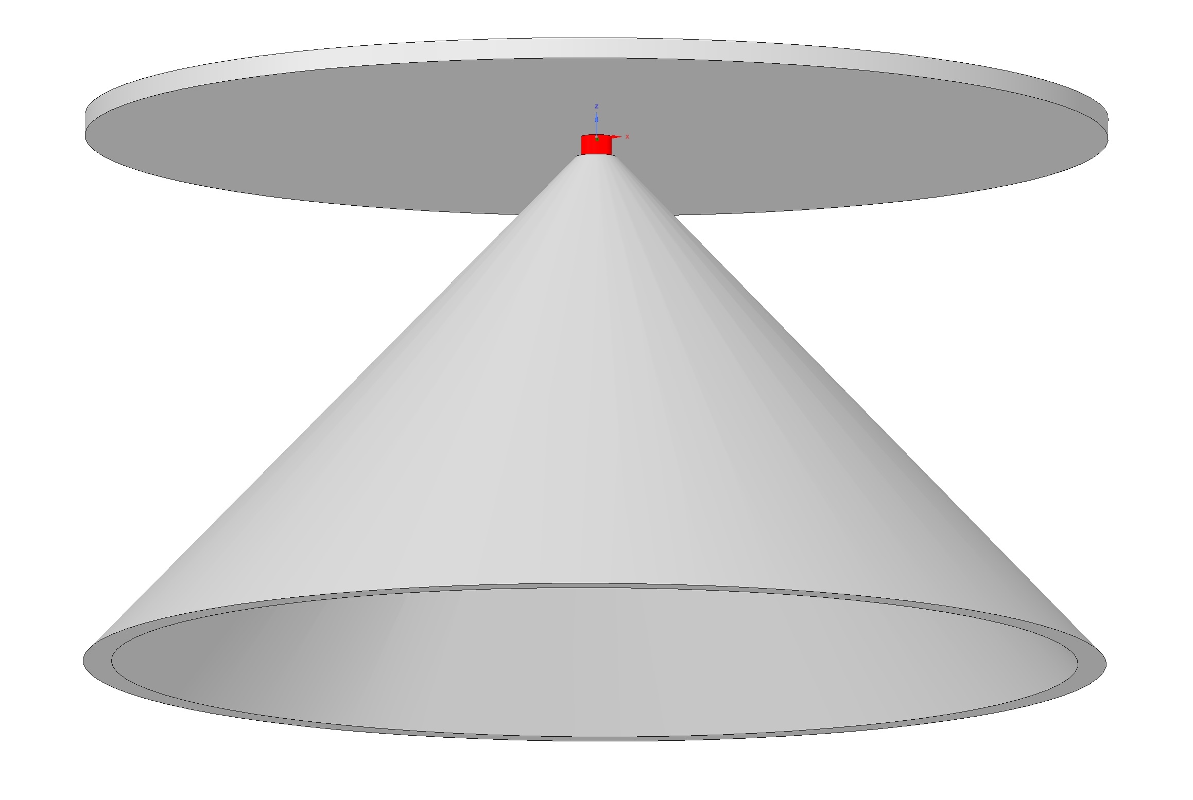 The discone is literally constructed with disc placed on top of a cone and a feed between the two shapes.