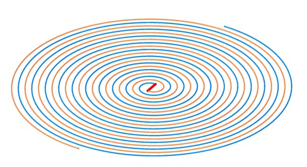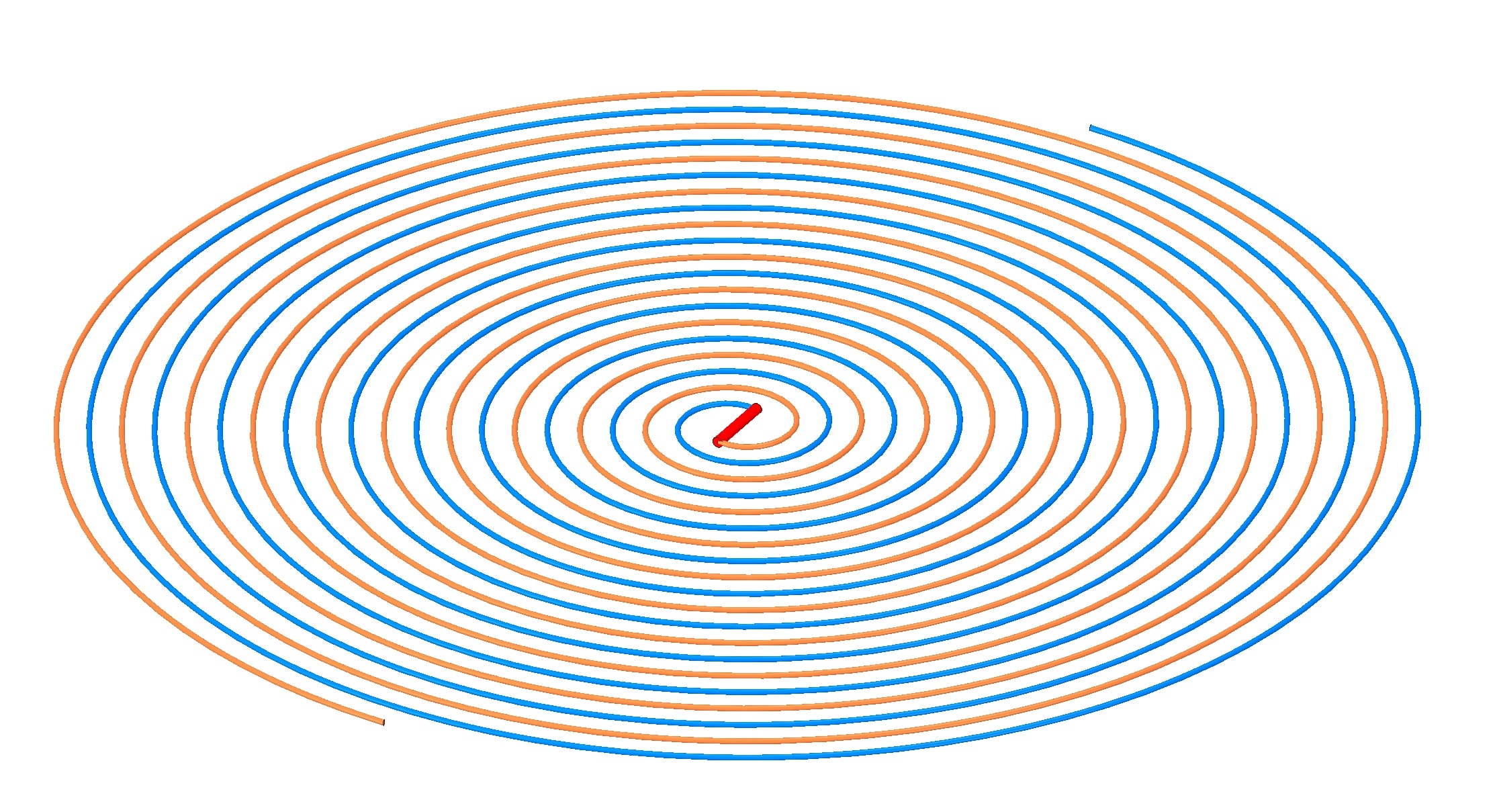 There exist many types of spiral antenna. The one shown is ans Archimedean Spiral Type, but logarithmic types are also popular. The antenna has circular polarisation and maximum gain in the direction of the central axis. Gain can be increased by placing this above a ground plane.